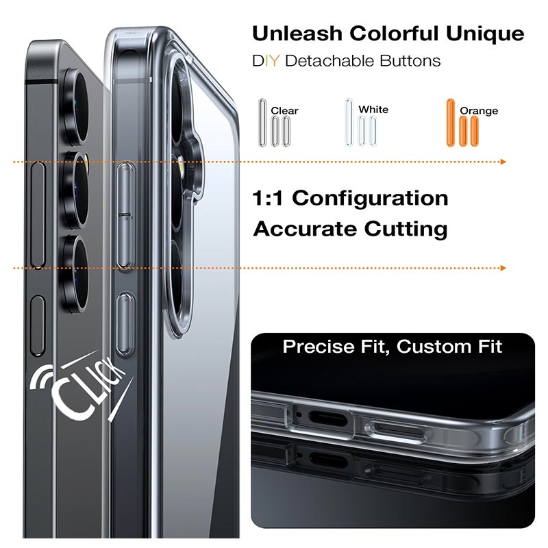 Die Hülle enthält drei austauschbare Tastensätze, mit denen du das Aussehen deines Samsung Galaxy S26 individuell gestalten kannst. Tauschen Sie die Tasten einfach aus, um sie an Ihren Stil, Ihr Outfit oder Ihre Stimmung anzupassen und ein einzigartiges, individuelles Aussehen zu schaffen.