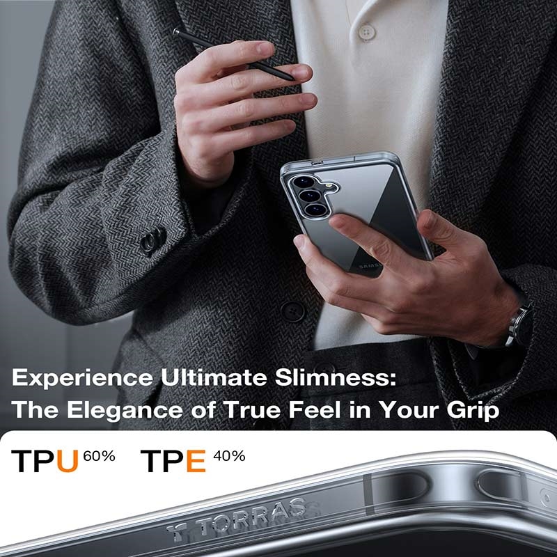 Die Torras Skin-Touch-Hülle wurde für Benutzer entwickelt, die eine raffinierte Ästhetik mit zuverlässigem Schutz im Alltag kombinieren möchten. Gefertigt aus einer Dual-Material-Mischung aus festem PC und flexiblem TPU, bietet sie Haltbarkeit bei einem schlanken Profil und einem komfortablen, weichen Griff in der Hand.