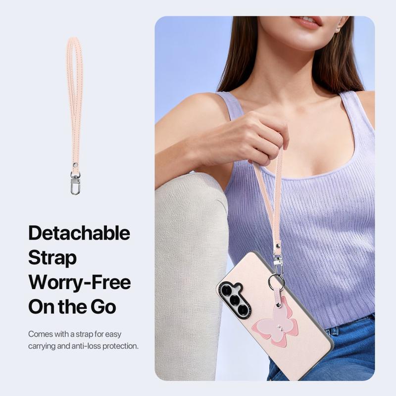 Samsung Galaxy S26+ Dux Ducis Luvy Hülle mit Fingerring/Handschlaufe - Hellrosa / Schmetterling
