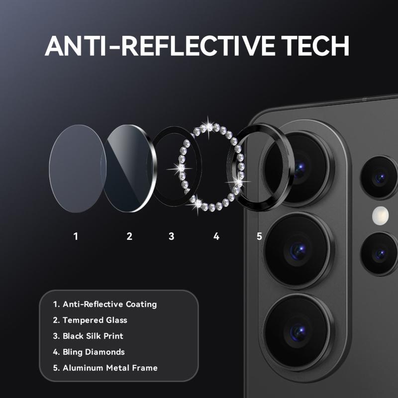 Verleihen Sie Ihrem Samsung Galaxy S26 Ultra mit dem NORTHJO Kameraobjektivschutz Glanz und Schutz. Mit schimmernden Strasssteinen und präzisionsgeschliffenem, gehärtetem Glas schützt er Ihr Kameraobjektiv vor Kratzern, Staub und Stößen und verleiht ihm einen Hauch von Eleganz und Luxus.