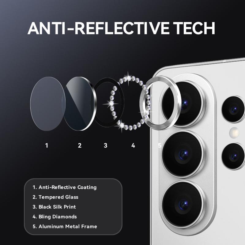 Verleihen Sie Ihrem Samsung Galaxy S26 Ultra mit dem NORTHJO Kameraobjektivschutz Glanz und Schutz. Mit schimmernden Strasssteinen und präzisionsgeschliffenem, gehärtetem Glas schützt er Ihr Kameraobjektiv vor Kratzern, Staub und Stößen und verleiht ihm einen Hauch von Eleganz und Luxus.