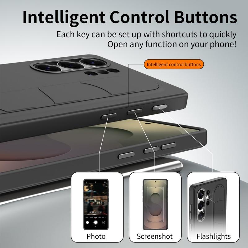 • Smart Hybrid-Hülle mit Standgriff für Samsung Galaxy S26 Ultra - NFC anpassbare Shortcut-Tasten, Armband-Kickstand & Alu-Kameraschutz