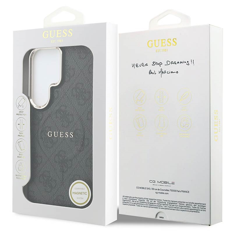 • Guess 4G Gold Frame MagSafe Hülle für Samsung Galaxy S26 Ultra - Schlanke Schutzhülle, Polyurethan, unterstützt kabelloses Laden