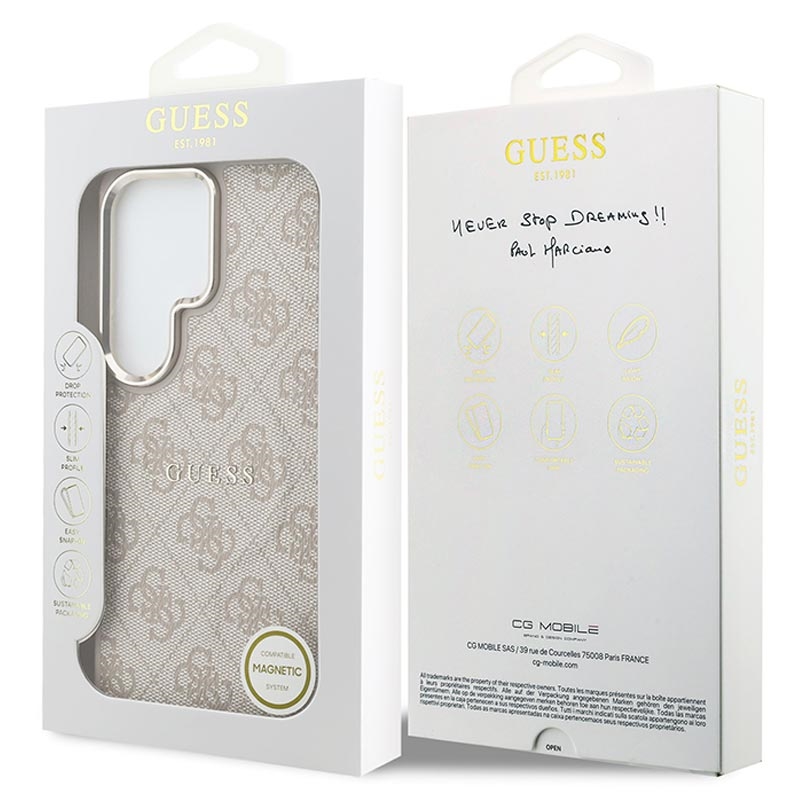• Guess 4G Gold Frame MagSafe Hülle für Samsung Galaxy S26 Ultra - Schlanke Schutzhülle, Polyurethan, unterstützt kabelloses Laden