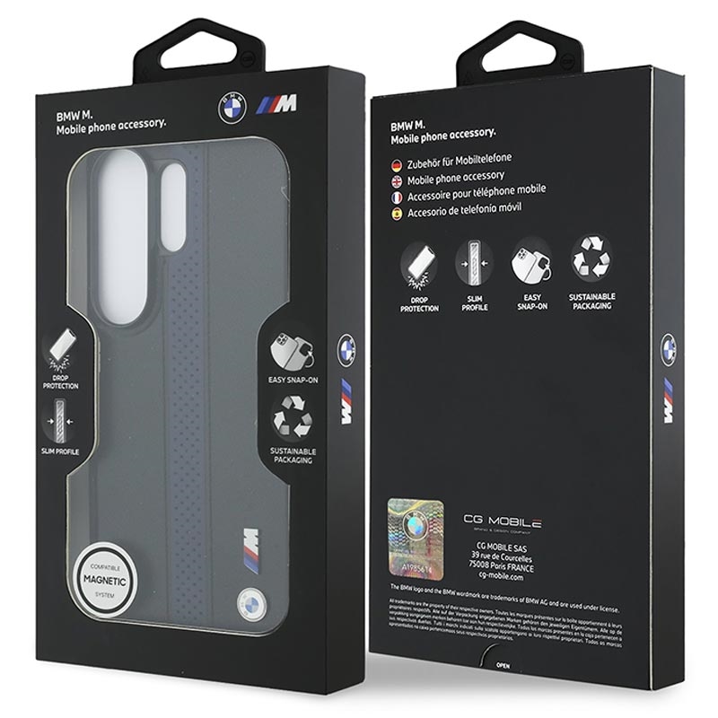 Werten Sie Ihr Samsung Galaxy S26 Ultra mit der magnetischen Hülle mit perforierten Streifen und Metalllogo von BMW M auf, die für alle entwickelt wurde, die sportlichen Luxus und hochwertige Details schätzen. Mit ihrem eleganten Design mit perforierten Streifen und einem BMW-Logo aus Metall verbindet diese Hülle eine vom Automobilbau inspirierte Ästhetik mit praktischem Schutz für den Alltag. Sie ist aus hochwertigem PU-Material gefertigt und bietet eine edle Verarbeitung, sicheren Halt und lange Haltbarkeit in einem schlanken Profil.