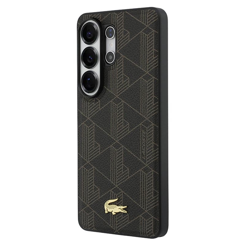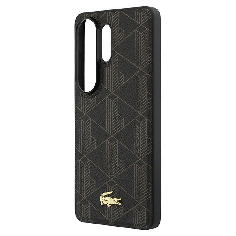 Lacoste PVC Blend Monogram Gold Logo Magnethülle für Samsung Galaxy S26 Ultra - Rückseite mit Krokodil-Logo