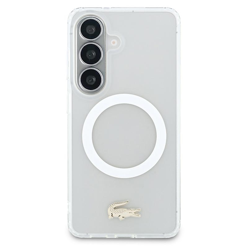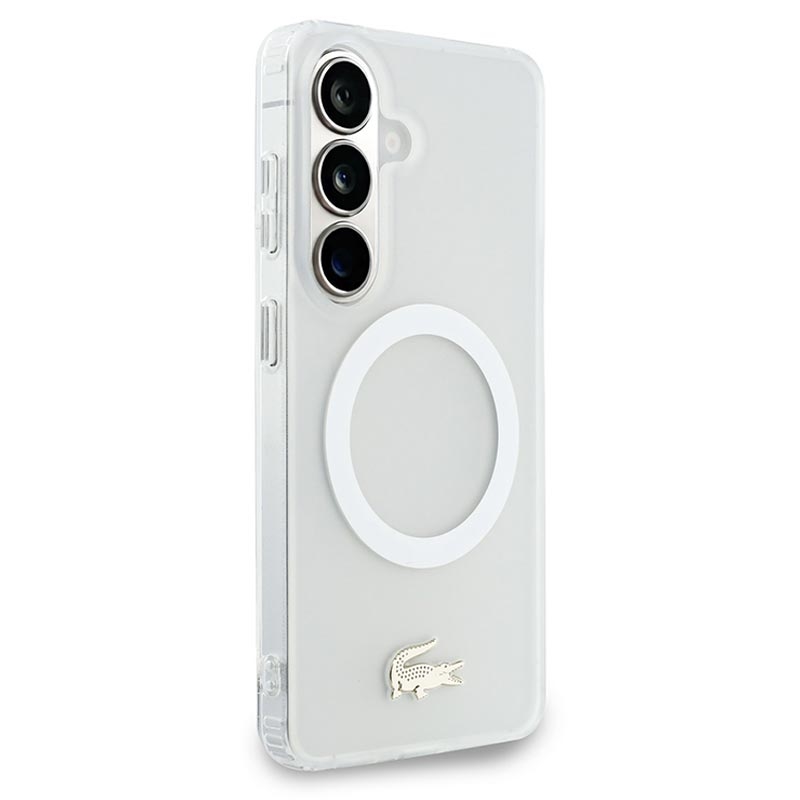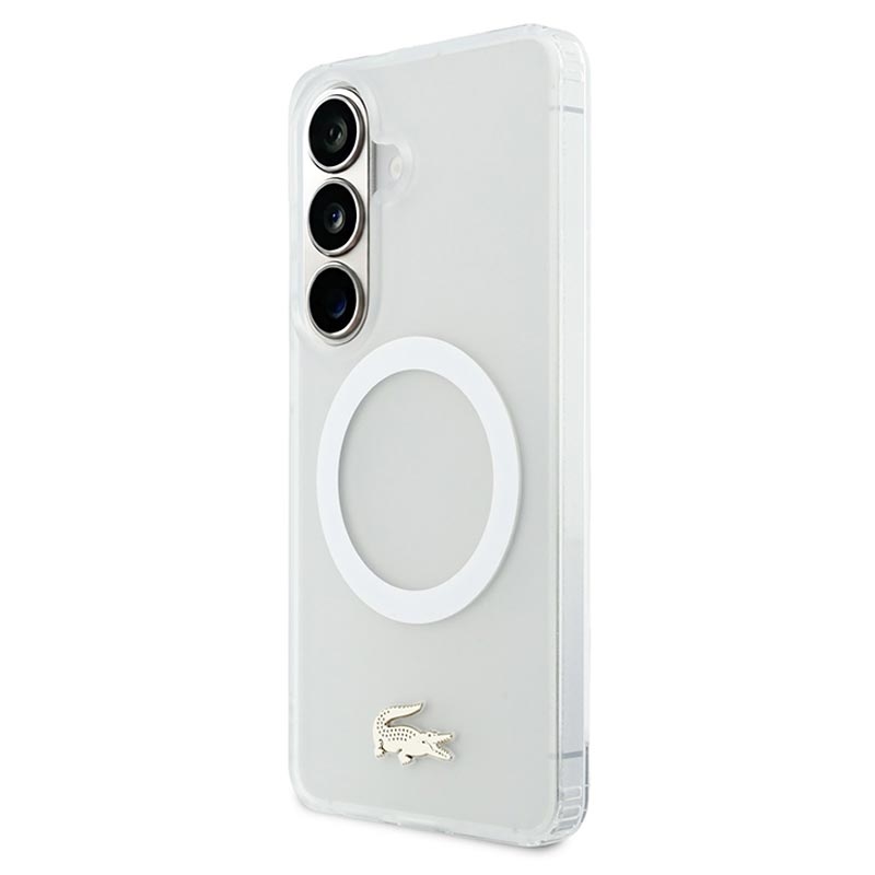 Samsung Galaxy S26 Lacoste Frosted Finish Gold Logo Hybrid Hülle - MagSafe-kompatibel - Weiß