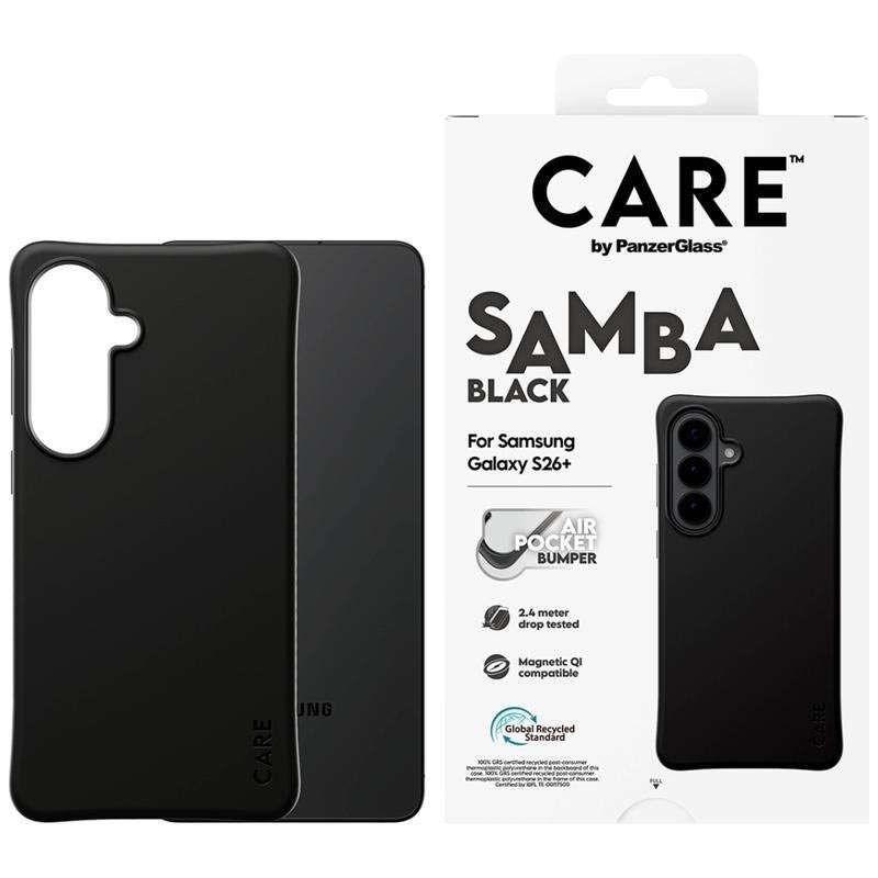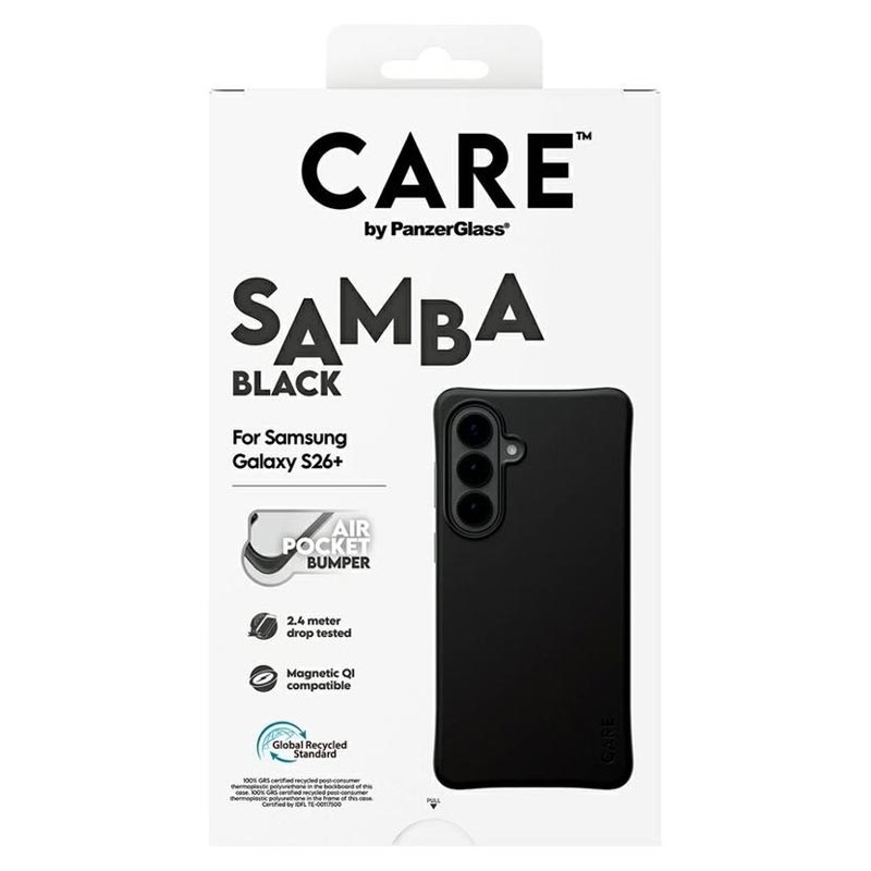 Verleihen Sie Ihrem Samsung Galaxy S26+ ein stilvolles Upgrade und schützen Sie es gleichzeitig Tag für Tag. Die CARE by PanzerGlass Qi Samba-Hülle besteht zu 100 % aus recyceltem TPU und wurde entwickelt, um alltäglichen Stößen, Stürzen und Kratzern standzuhalten, ohne dabei an Komfort einzubüßen. Der verbesserte Kantenschutz hilft, Stöße zu absorbieren, während die griffige Oberfläche sich angenehm anfühlt und das Samsung Galaxy S26+ sicherer in der Hand hält.