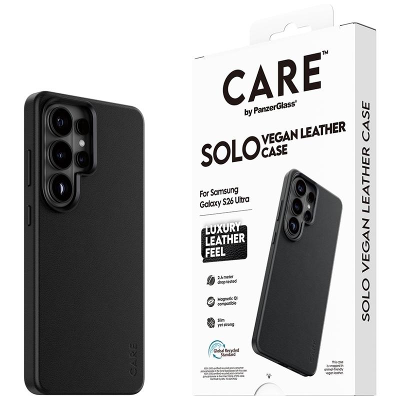 • Care by PanzerGlass Solo Magnetische Hülle für Samsung Galaxy S26 Ultra - PU-Oberfläche, Falltest aus 2,4 m Höhe, kompatibel mit magnetischem Zubehör, verbesserter Kameraschutz