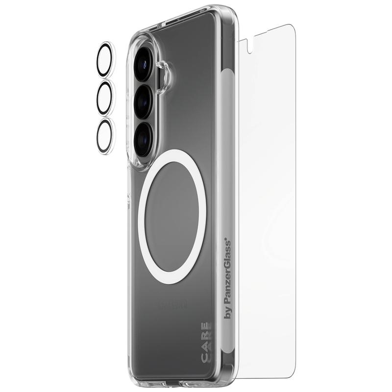 Bieten Sie Ihrem Samsung Galaxy S26 umfassenden Schutz mit dem CARE by PanzerGlass 3-in-1 Explorer Bundle. Dieses All-in-One-Set kombiniert eine Ultra-Wide Fit-Displayschutzfolie, einen transparenten Kameraschutz und eine robuste transparente Hülle, sodass Ihr Smartphone von der Frontscheibe über das Kameramodul bis hin zur Rückseite geschützt ist. Es wurde für den Alltag in der Stadt und Wochenendausflüge entwickelt und schützt Ihr Smartphone vor Stürzen, Kratzern und Stößen, während das ursprüngliche Design Ihres Smartphones sichtbar bleibt.