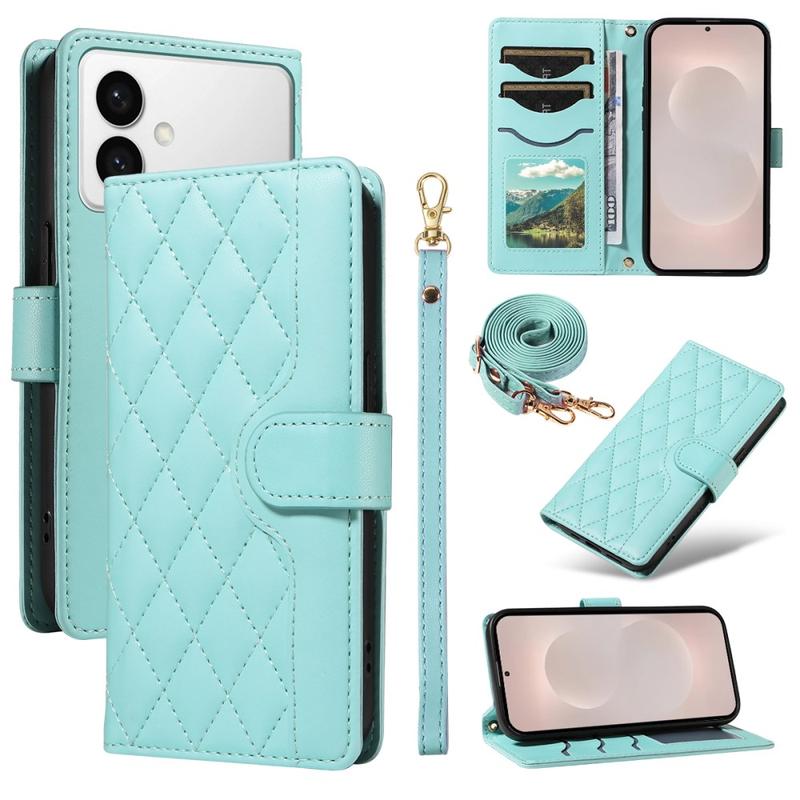 Samsung Galaxy S26 Edge Luxus Gesteppte Wallet Hülle - Grün