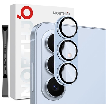 Samsung Galaxy S26 Northjo Voller Schutz aus mattem Metall und gehärtetem Glas Kamera-Objektivschutz - Blau