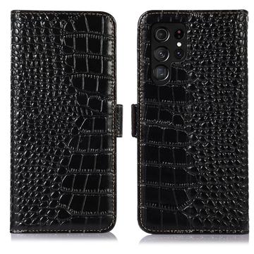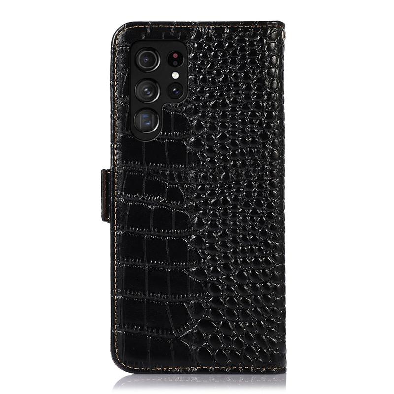 Samsung Galaxy S26 Ultra Crocodile Serie Lederhülle mit Geldbörse mit RFID - Schwarz