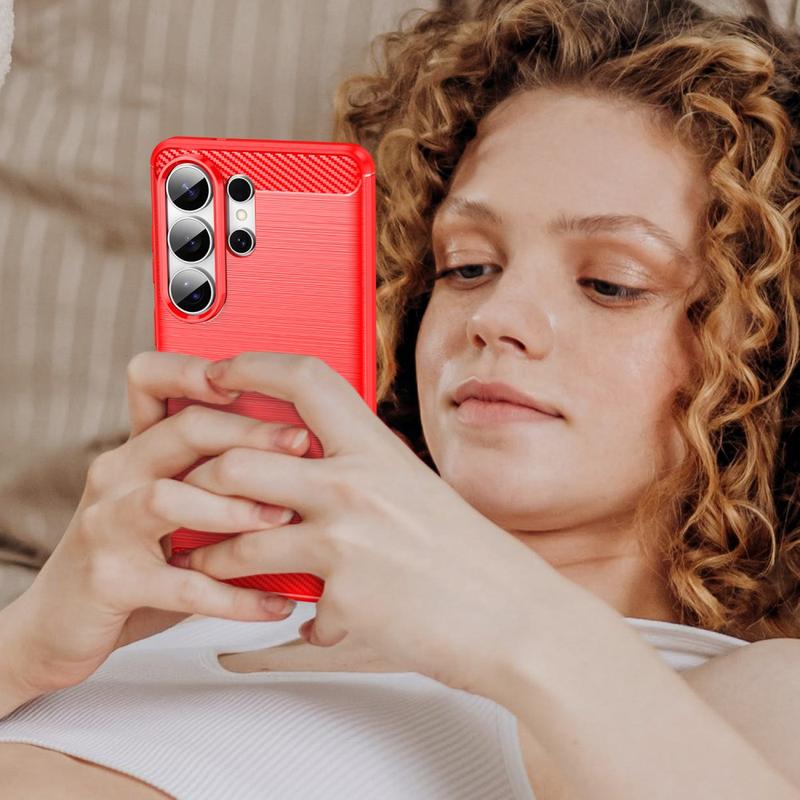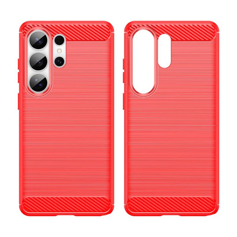 Samsung Galaxy S26 Ultra Gebürstete TPU Hülle - Karbonfaser - rot