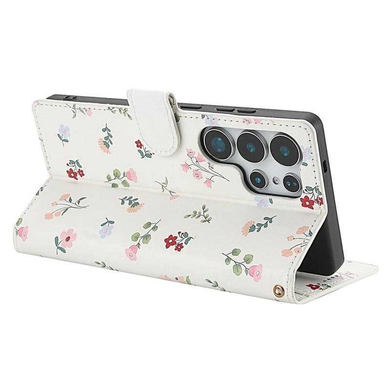 Rhombisches Blumen Wallet Hülle für Samsung Galaxy S26 Ultra - mit Riemen und Kartenfächern
