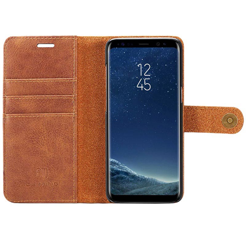 DG.Ming 2-in-1 Geldbörse Hülle für Samsung Galaxy S8+ ist eine ausgezeichnete Kombination aus einer Ledertasche und einem abnehmbaren magnetischen Cover. Diese Hülle ist multifunktional, mit Kartenfächern und einer Tasche für Geld, hält alles zusammen. Metall-Snap-on-Verschluss sorgt für zusätzliche Sicherheit und macht es möglich, die Tasche zum Stativ für die freihändige Verwendung zu falten. Sein ausgezeichnetes Design, mit Spaltleder beschichtet, fühlt sich gut in der Hand.