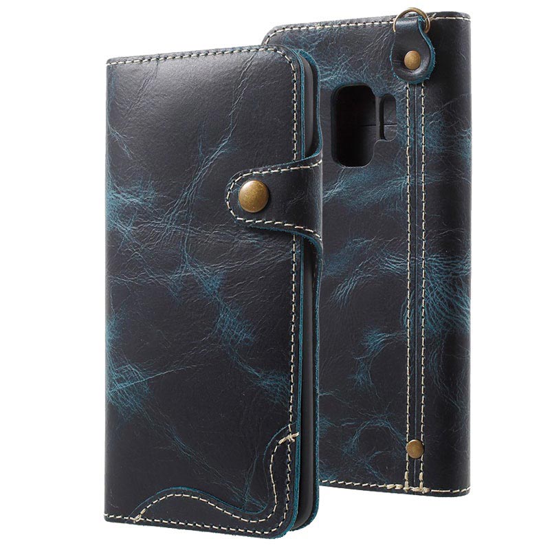 - Eine Lederhülle im Retro-Stil für Galaxy S9 aus echtem Leder