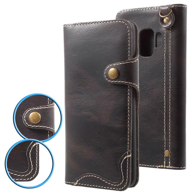 - Eine Lederhülle im Retro-Stil für Galaxy S9 aus echtem Leder
