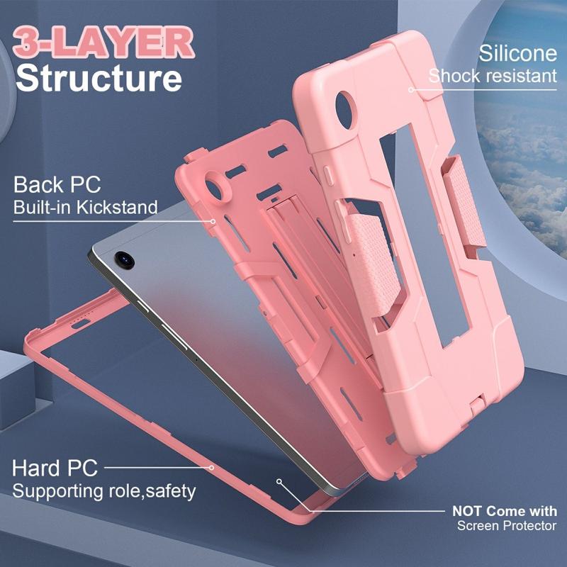 Samsung Galaxy Tab A11 Hybrid-Hülle im Roboter-Stil - Dreilagige Schutzhülle mit integriertem Kickstand und Stifthalter