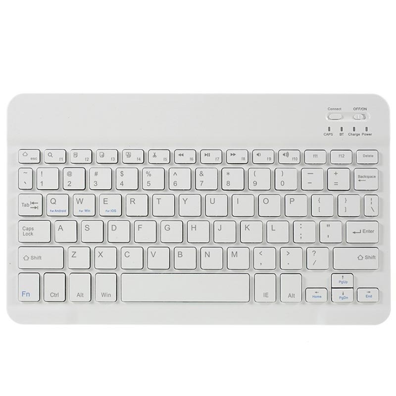 - Die Bluetooth-Tastatur verfügt auch über ein QWERTY-Layout und einen eingebauten Akku