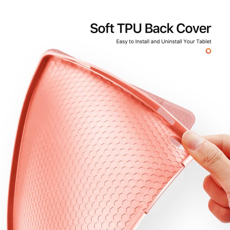 Dieses Zubehör schützt das Gerät vor Dellen und Kratzern und erweitert seine Funktionalität. Die Frontklappe dient gleichzeitig als Ständer mit drei Modi für einfaches Tippen und freihändiges Anschauen von Videos.