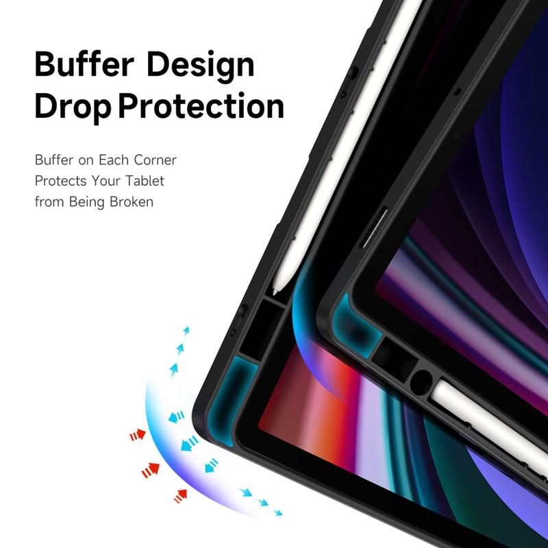Ultra-schlank: Die schlanke, leichte und weiche Vorderseite besteht aus hochwertigem PU-Leder, die kratzfeste Innenseite bietet hervorragenden Schutz, und der TPU-Rahmen mit PC-Rückseite macht Ihr Tablet stabiler
