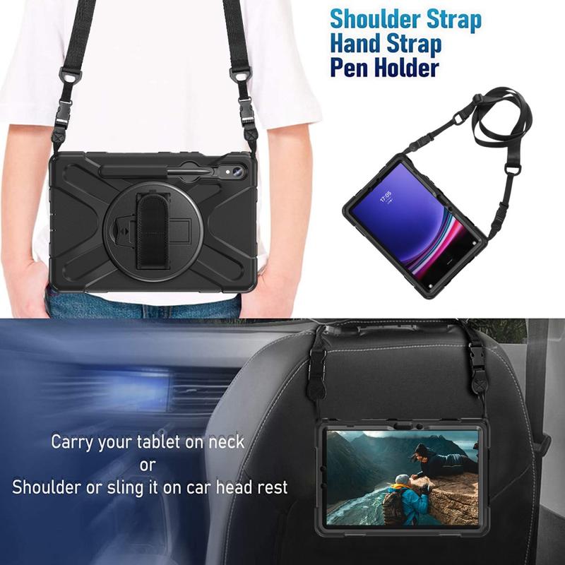 • Heavy Duty 360-Grad-Hülle mit Hand & Schultergurt für Samsung Galaxy Tab S10 FE, Galaxy Tab S9 FE, Galaxy Tab S9, Galaxy Tab S8, Galaxy Tab S7