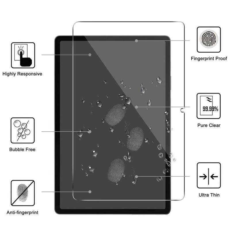 Dieser Displayschutz aus gehärtetem Glas für das Samsung Galaxy Tab S9+, Galaxy Tab S8+, Galaxy Tab S7 FE verfügt über einen 9H-Härtestandard, sodass Schlüssel und Münzen in Ihrer Tasche ihm nichts anhaben können. Obwohl es eine 9H-Haltbarkeit aufweist, ist der Displayschutz aus gehärtetem Glas mit nur 0,3 mm ultradünn, sodass alle Touchscreen-Funktionen erhalten bleiben.