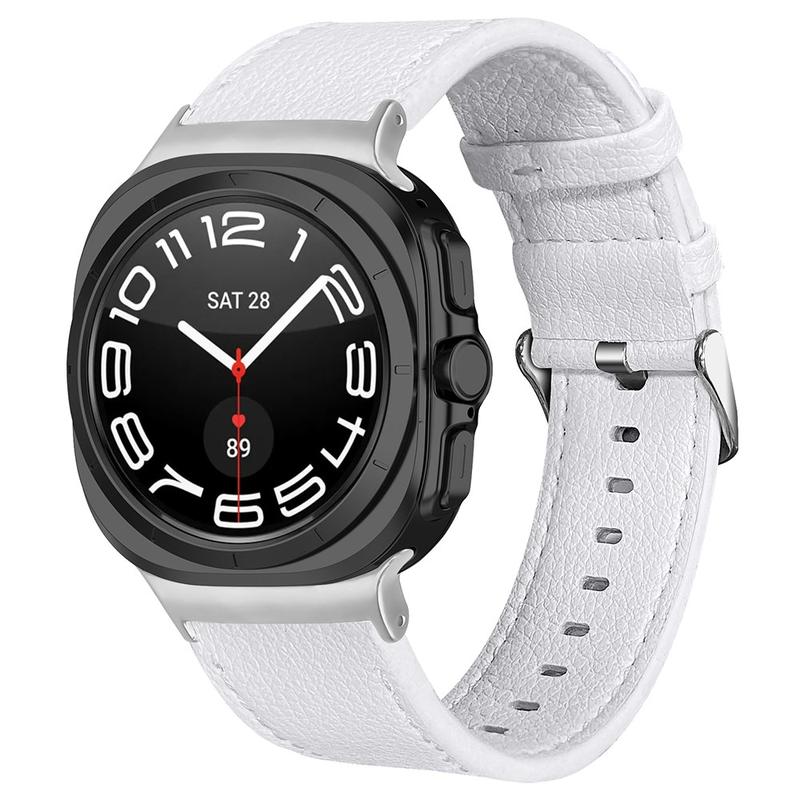 Werten Sie Ihr Samsung Galaxy Watch Ultra auf und setzen Sie mit diesem vielseitigen und langlebigen Lederarmband ein modisches Statement. Dank der mitgelieferten Anschlüsse lässt es sich einfach installieren und entfernen. Diese Anschlüsse sorgen außerdem für eine sichere Befestigung an Ihrem Samsung Galaxy Watch Ultra und verhindern so ein versehentliches Lösen.