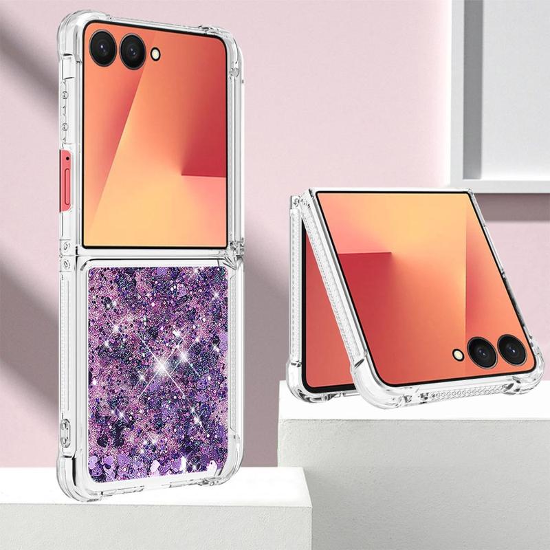 Samsung Galaxy Z Flip7 Glitter Quicksand TPU Hülle - lila Herzen