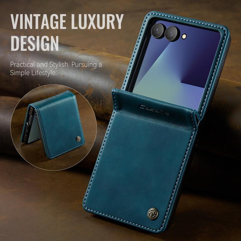 Samsung Galaxy Z Flip7 Caseme 033 Kalb Textur Brieftasche Hülle mit RFID-Blockierung - Grün