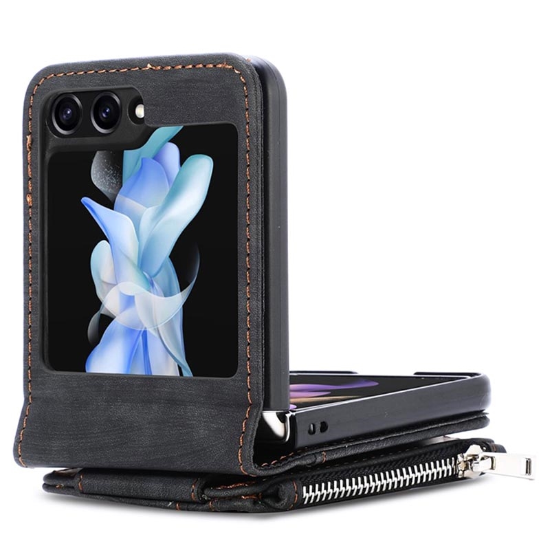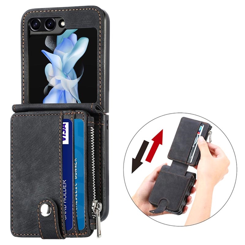 Samsung Galaxy Z Flip5 Retro Beschichtete Hülle mit Geldbörse