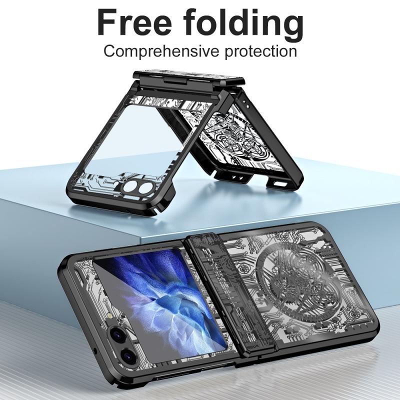 Das Mechanical Legend Series Case für Samsung Galaxy Z Flip6, Galaxy Z Flip7 FE kombiniert hervorragenden Schutz mit elegantem Design. Diese galvanisierte PC-Telefonhülle mit Bildschirmfolie bietet einen umfassenden Schutz vor Kratzern, Stürzen und täglicher Abnutzung. Das stilvolle Finish verleiht Ihrem Gerät einen Hauch von Eleganz und macht es sowohl funktional als auch modisch.
