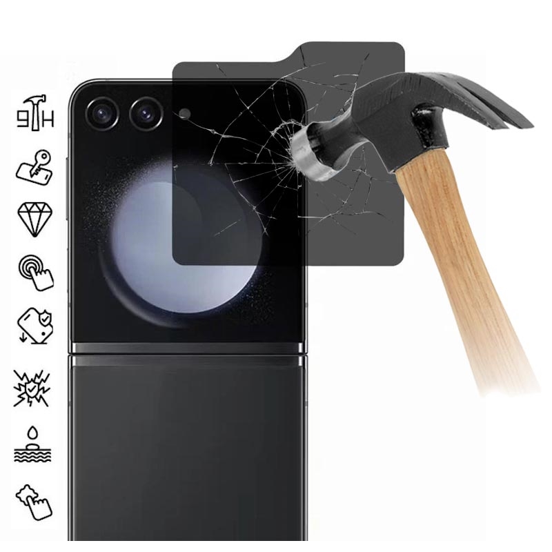 - Vollständiger Sichtschutz aus gehärtetem Glas für das Samsung Galaxy Z Flip6, Galaxy Z Flip7 FE