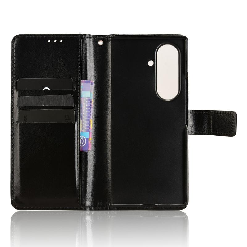 Der Name "Crazy Horse" stammt aus der traditionellen Pferdesattlerei; die strukturierte Oberfläche wird mit Wachsen behandelt, die einen zweifarbigen Pull-up-Effekt erzeugen, der vollnarbiges Leder imitiert, dabei aber tierfreundlich, leichter und kratzfester ist. Das macht es ideal für Telefonzubehör für den täglichen Gebrauch, bei dem sowohl Haltbarkeit als auch Stil wichtig sind.