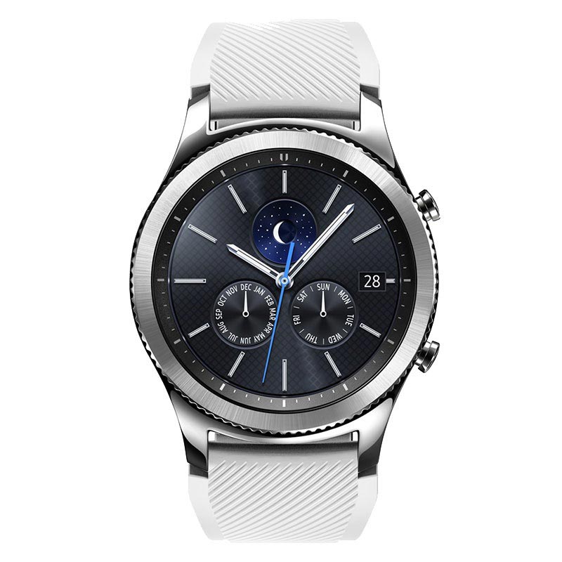 Ideal für Sport, das Silikon Armband für das Samsung Gear S3 ist flexibel, leicht und liegt komfortabel am Handgelenk. Das robuste und verschleißfeste Band verfügt über eine klassische Metallschnalle auf der Rückseite und eine texturierte Oberfläche.