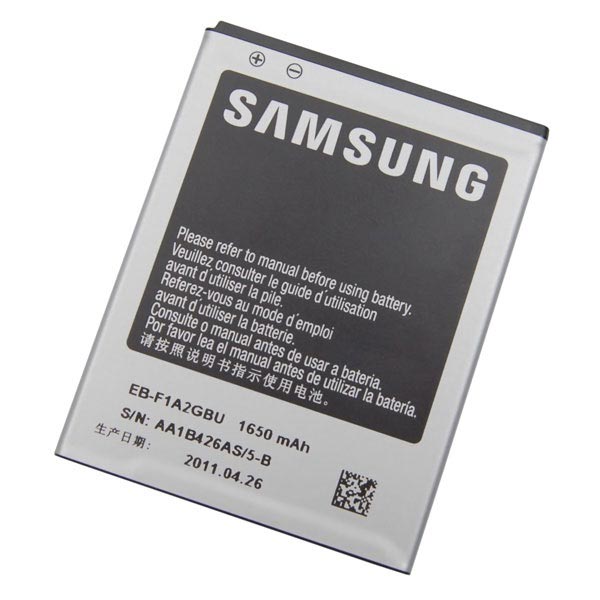 • Original Samsung I9100 Galaxy S 2, I9105 Galaxy S 2 Plus, i9103 Galaxy R, I9103 Galaxy Z, Galaxy Z, Galaxy Camera GC100 Akku EB-F1A2GBU - 1650 mAh - Li-Ion.