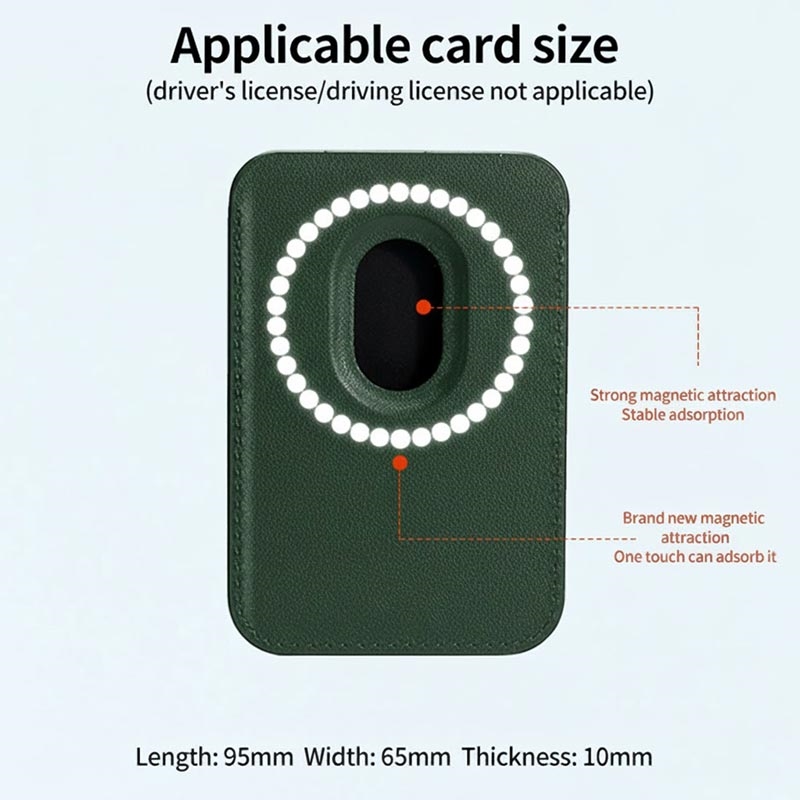 MagSafe-kompatible Kartenhalter verwenden eine präzise magnetische Ausrichtung, um eine sichere Befestigung und einfache Positionierung zu gewährleisten. Schlanke Brieftaschen sind sehr beliebt, weil sie das Durcheinander in der Tasche verringern und schnellere, bequemere tägliche Zahlungen ermöglichen.