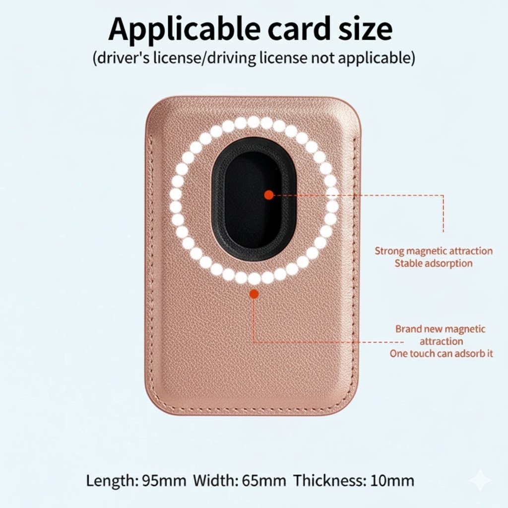 MagSafe-kompatible Kartenhalter verwenden eine präzise magnetische Ausrichtung, um eine sichere Befestigung und einfache Positionierung zu gewährleisten. Schlanke Brieftaschen sind sehr beliebt, weil sie das Durcheinander in der Tasche verringern und schnellere, bequemere tägliche Zahlungen ermöglichen.