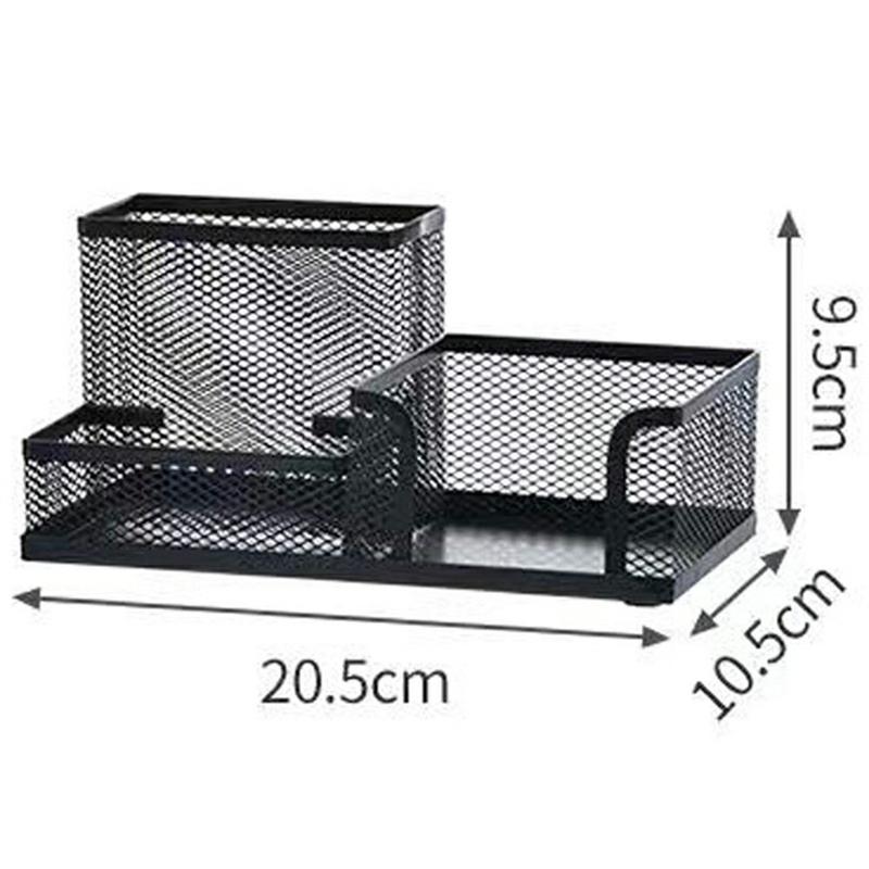 Mit dieser eleganten Aufbewahrungsbox aus Metallgeflecht ist die Unordnung in Sekundenschnelle beseitigt. Drei separate Fächer sorgen für perfekte Ordnung bei Stiften, Klammern, Scheren und Haftnotizen, während das luftige Netzdesign jedem Schreibtisch, Regal oder Waschtisch einen modernen Touch verleiht.