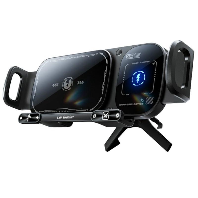 SD01 15W Dual-Coil Wireless Auto-Ladegerät / Autohalterung - Schwarz