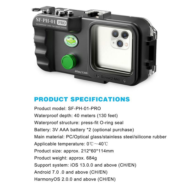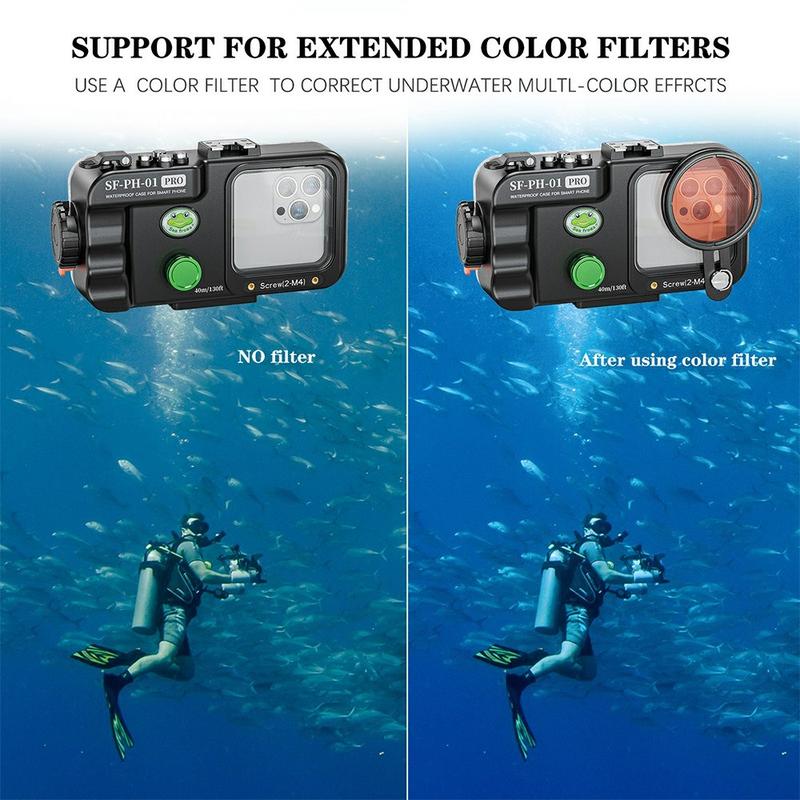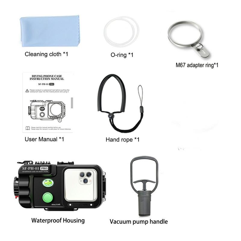 • Sea Frogs SF-PH-01-PRO Universal 40m IPX8 Wasserdichtes Telefongehäuse - 360° Tauchgehäuse mit 67mm Objektivanschluss