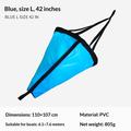 Verbessern Sie die Kontrolle und Stabilität auf dem Wasser mit diesem 42-Zoll-Seeanker in Größe L. Er wurde entwickelt, um einen Widerstand im Wasser zu erzeugen und so das Abdriften und plötzliche Bewegungen durch Wind und Wellen zu reduzieren - nützlich für Jetskis, Schlauchboote, Kajaks, Segelboote und kleine Motorboote. Das kompakte, leichte Design lässt sich leicht in engen Stauräumen unterbringen, und die automatische Bodenöffnung sorgt dafür, dass sie bei Bedarf problemlos eingesetzt werden kann. Er ist aus strapazierfähigem, hochfestem PVC mit verstärktem Gurtband gefertigt und für den regelmäßigen Einsatz auf See ausgelegt. Bitte beachten Sie: Ankertau und Schwimmer sind nicht im Lieferumfang enthalten.