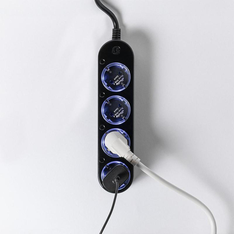 Jede Steckdose verfügt über eine anpassbare mehrfarbige LED-Anzeige mit einstellbarer Helligkeit und einen Nachtmodus für dezente Beleuchtung, ohne den Schlaf zu stören.