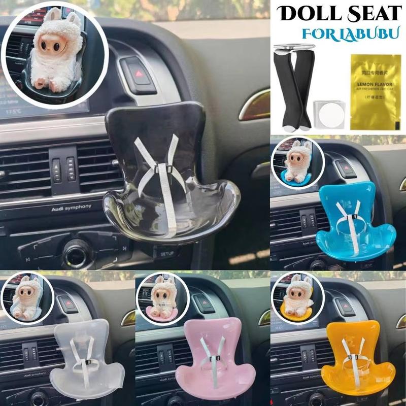 Labubu Mini-Sicherheitsautositz - Clip-On-Autolüftungshalterung für 17cm Plüschfiguren, integrierter Sicherheitsgurt, Innenraumdekoration