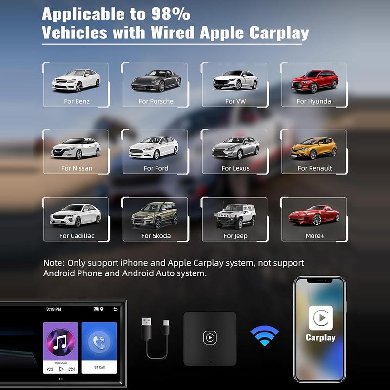 Dieser Adapter bietet einen nahtlosen Übergang von kabelgebundenem zu kabellosem CarPlay und Android Auto und verbessert die Infotainment-Funktionen Ihres Fahrzeugs. Die einfache Installation, die stabile Verbindung und die breite Kompatibilität machen ihn zu einer wertvollen Ergänzung für jedes Fahrzeug, das mit werkseitig installiertem CarPlay ausgestattet ist.