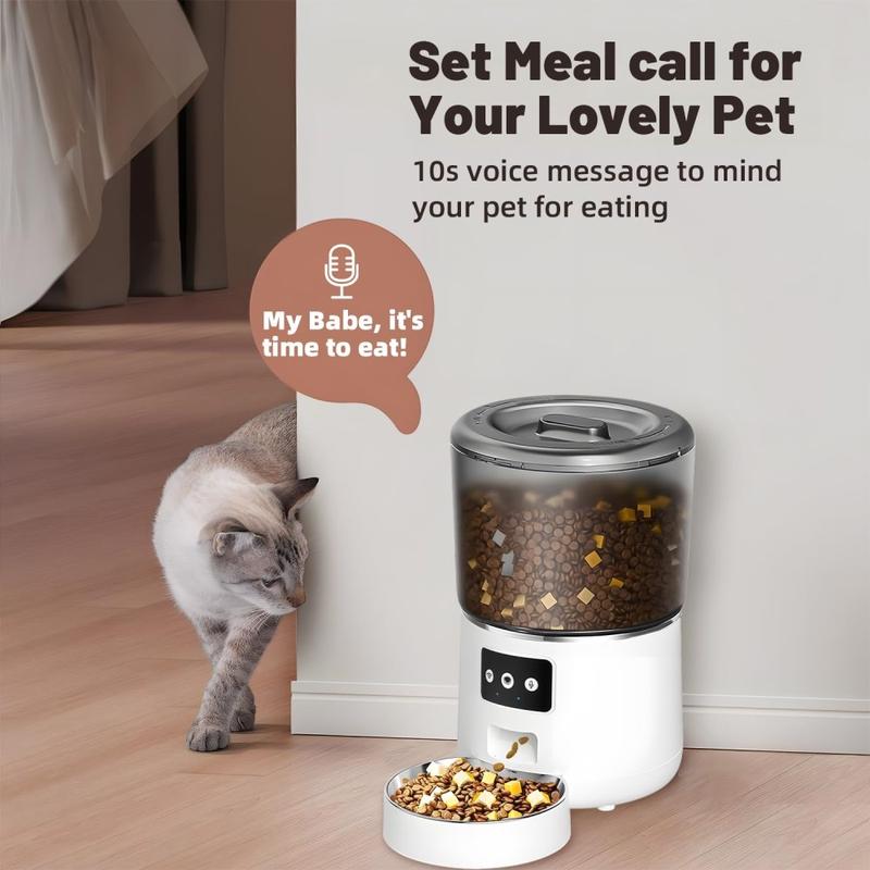 - Sprachaufzeichnungsfunktion: Nehmen Sie eine persönliche Nachricht auf, die während der Fütterungszeiten abgespielt wird, um Ihr Haustier zu beruhigen, wenn es Zeit zum Essen ist.