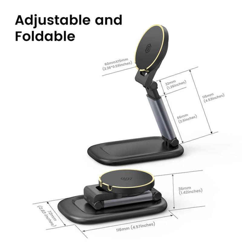 Der SODI BM310 Magnetic Foldable Phone Stand ist ein vielseitiges Zubehör, das Ihr Smartphone-Erlebnis verbessert. Er verfügt über eine starke magnetische Befestigung, die mit der iPhone 12/13/14/15/16-Serie kompatibel ist und einen stabilen Halt gewährleistet. Der Ständer ist faltbar und tragbar, was ihn praktisch für unterwegs macht. Darüber hinaus kann er auch als kontinuierliche Kamerahalterung für MacBooks verwendet werden und ermöglicht so nahtlose Videoanrufe und Fotos.