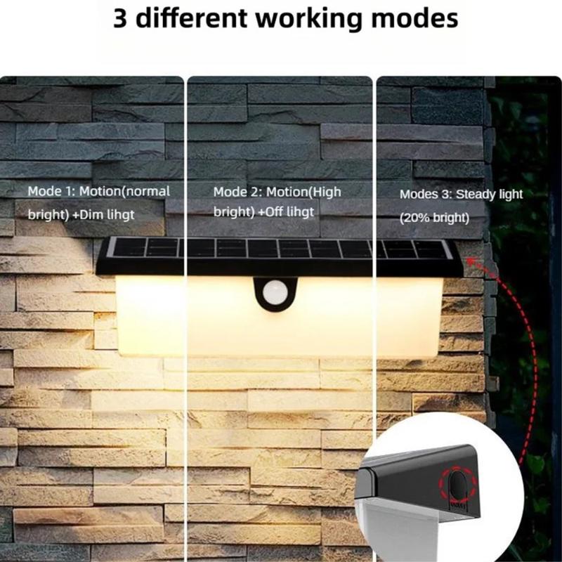 - Freihändige Automatisierung - lädt sich tagsüber auf, leuchtet nachts; der Bewegungssensor löst sofort aus, wenn jemand vorbeigeht.