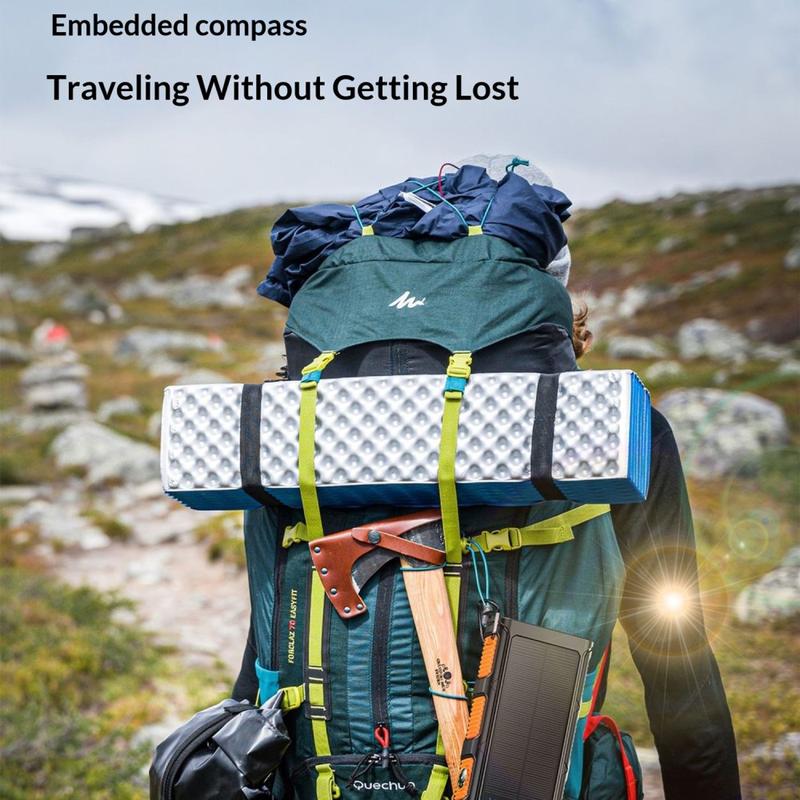 Der leistungsstarke 30.000-mAh-Akku unterstützt mehrere Ladezyklen für Smartphones, kleine Gadgets und andere Alltagsgeräte. Außerdem verfügt er über PD-Schnellladung mit 20 W, zwei Ausgangsanschlüsse sowie integrierte Typ-C-, Micro-USB- und Lightning-Kabel, sodass Sie bequemer aufladen können, ohne zusätzliche Kabel mitnehmen zu müssen. Für noch mehr Praktikabilität im Freien sind eine helle LED-Taschenlampe, ein SOS-Alarm und ein Kompass enthalten.